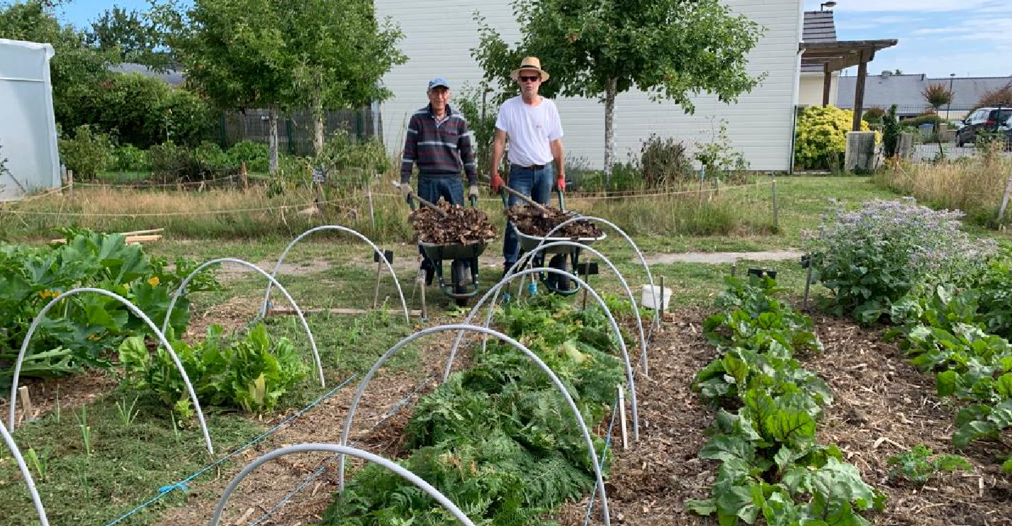 Brigitte a nettoyé les bacs des écoles = suppression des petits pois, désherbage, tuteurage des tomates.
