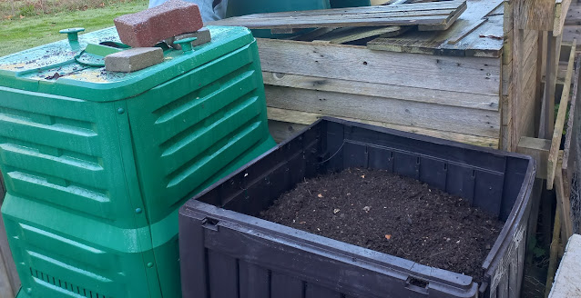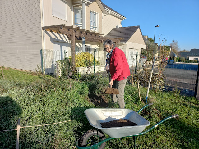 Bruno a récupéré de la terre issue du gros tas qui s'est accumulé au fil du temps avec les déchets végétaux du jardin.