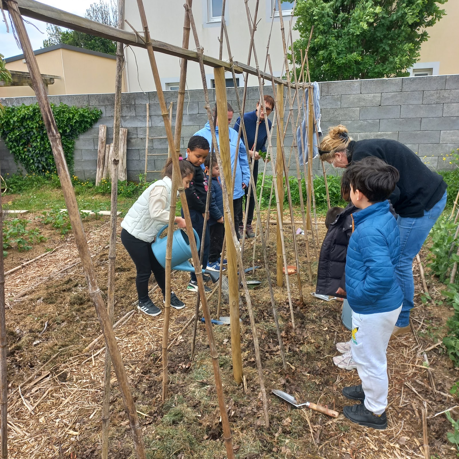Cet après-midi, 2 classes participeront aux ateliers . Découverte du Jardin, observation,